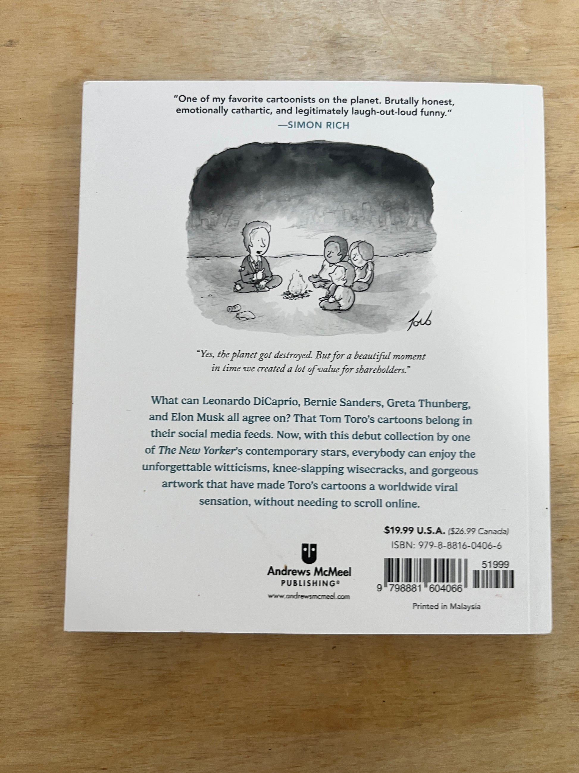 What can Leonardo DiCaprio, Bernie Sanders, Greta Thunberg, and Elon Musk all agree on? That Tom Toro's cartoons belong in their social media feeds. Now, with this debut collection by one of The New Yorker's contemporary stars, everybody can enjoy the timeless witticism and thigh-slapping wisecracks of Toro's cartoons without needing to go online.