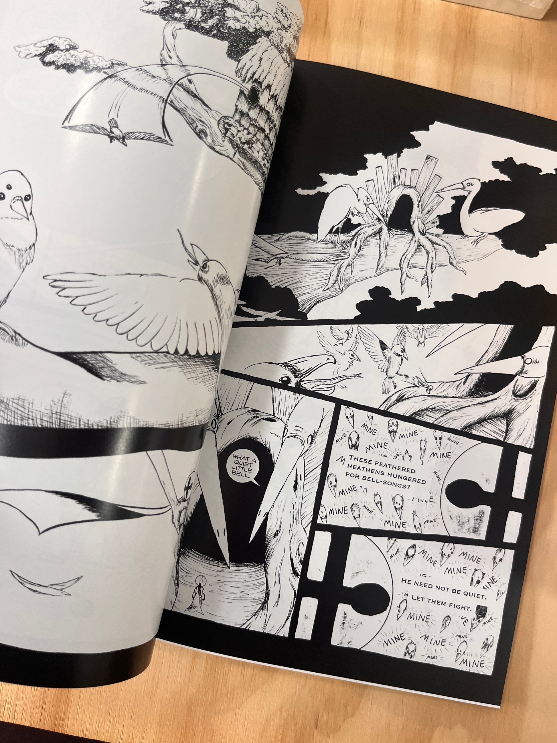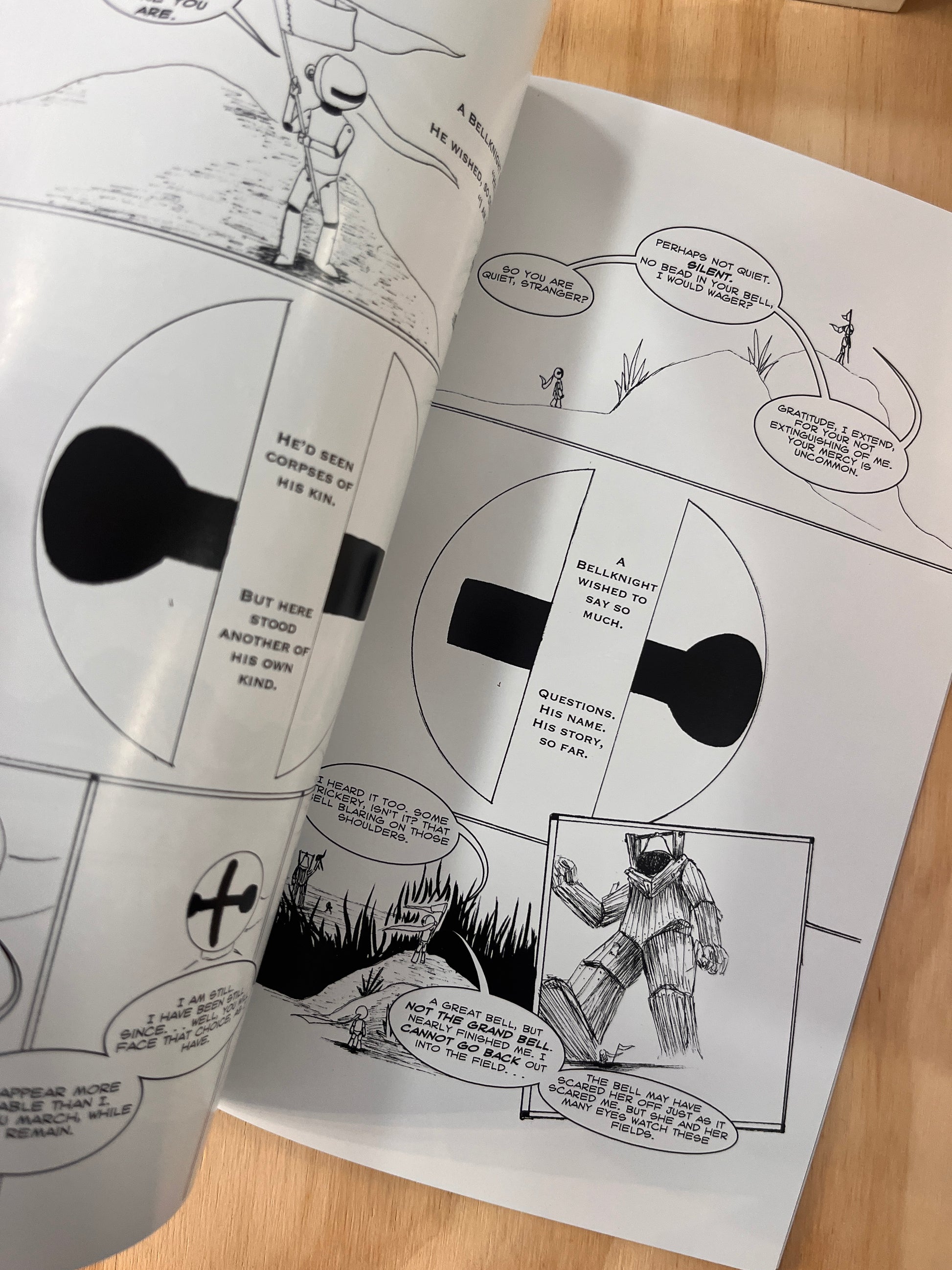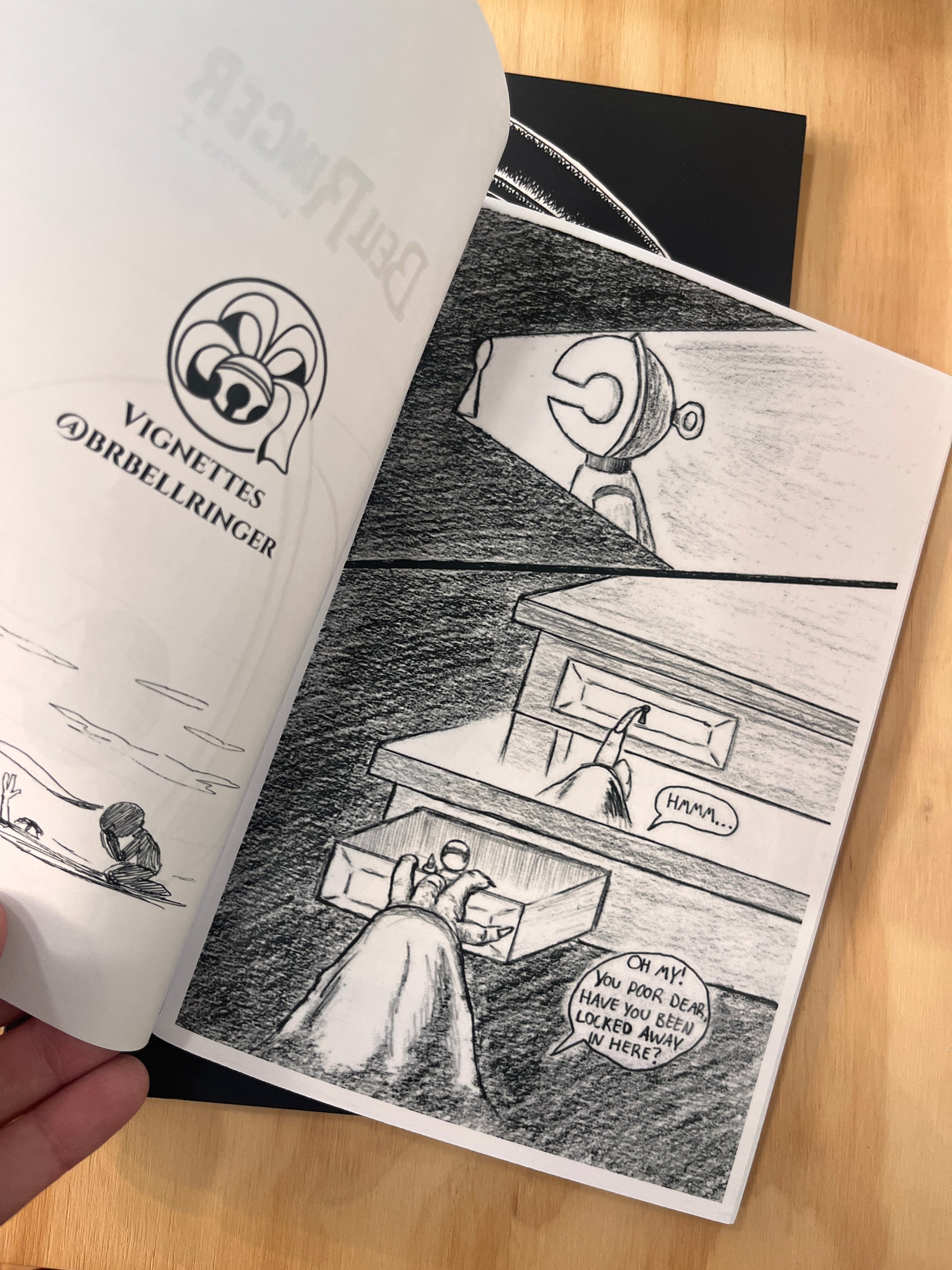 The titular graphic novel around which all of BellRinger is satellite. A bell headed wooden doll endures a quest to ring a Grand Bell to awaken his slumbering, corrupted world and save the child he loves.