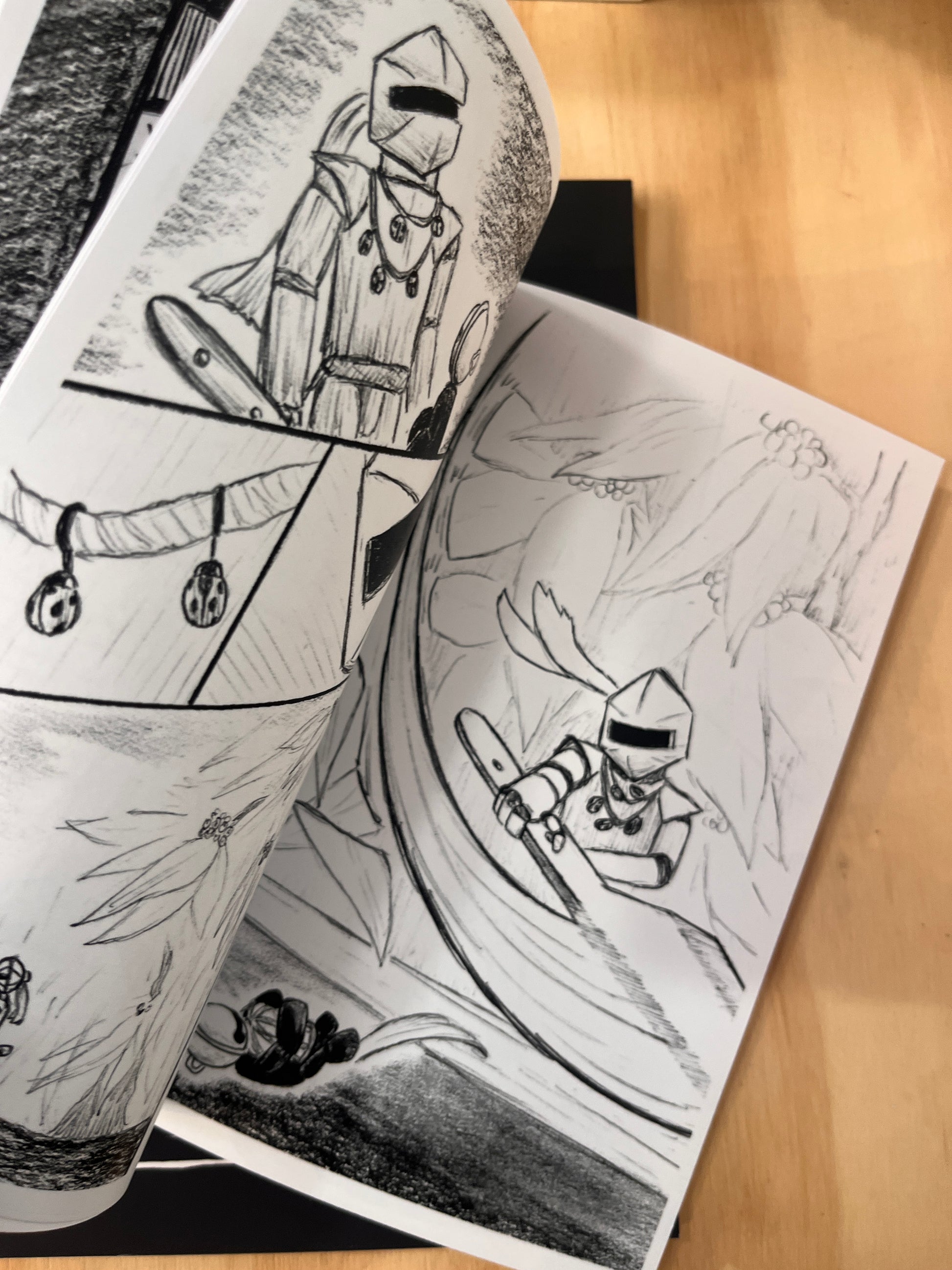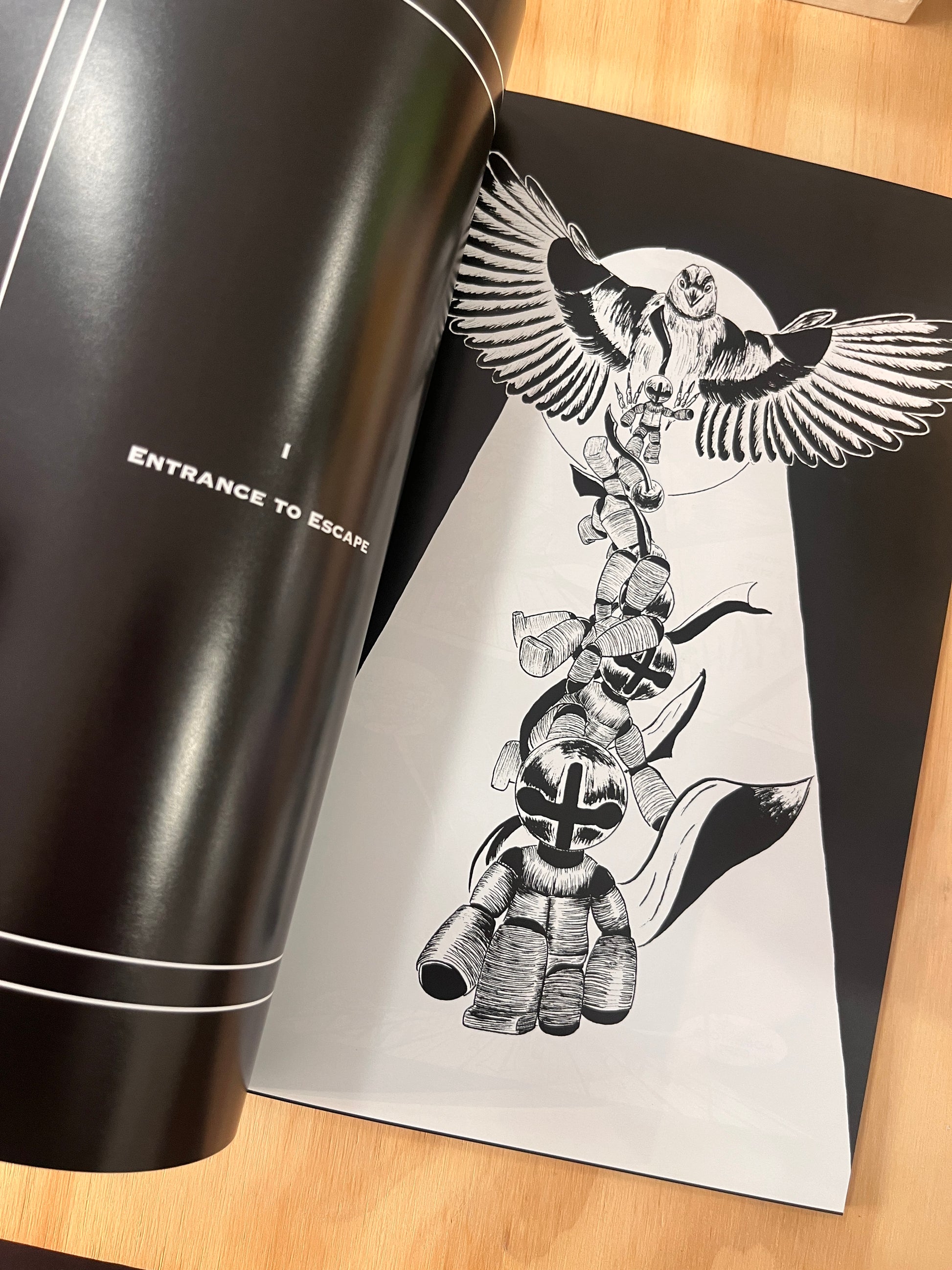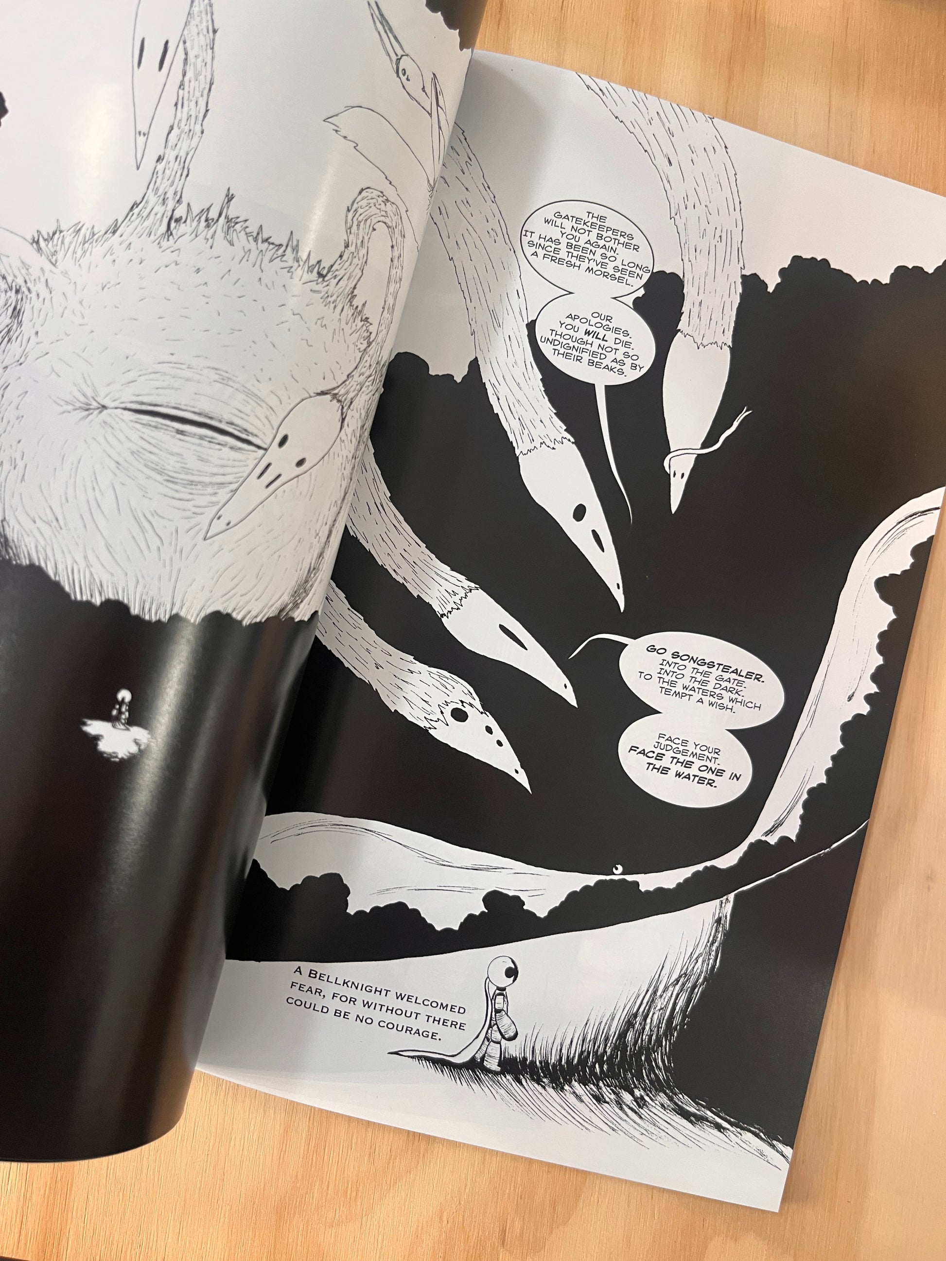 The titular graphic novel around which all of BellRinger is satellite. A bell headed wooden doll endures a quest to ring a Grand Bell to awaken his slumbering, corrupted world and save the child he loves.