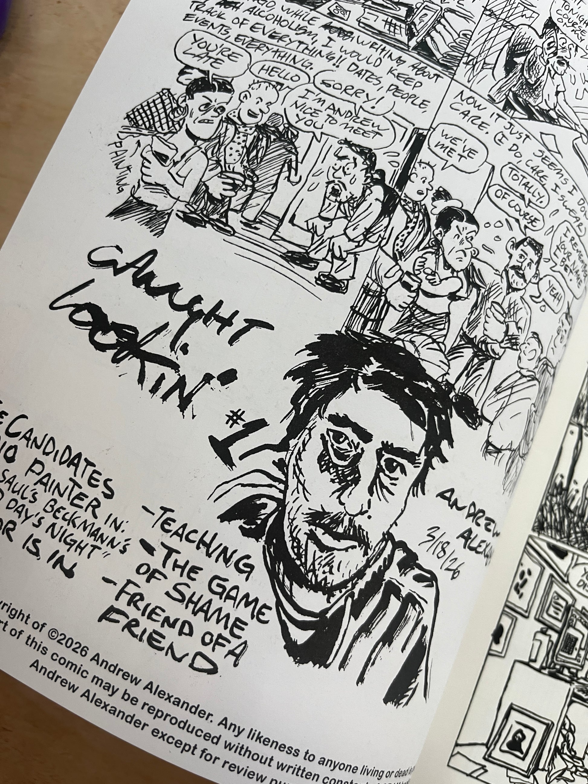 Caught Lookin' #1 by Andrew Alexander is the first comic in 5 years from the head-honcho here at CRAM books. It's a collections of Non-fiction and Fiction comics with the highlights being a 25 page chess-farse called "The Candidates" and the 8 page autobiographical story "The Editor is in".