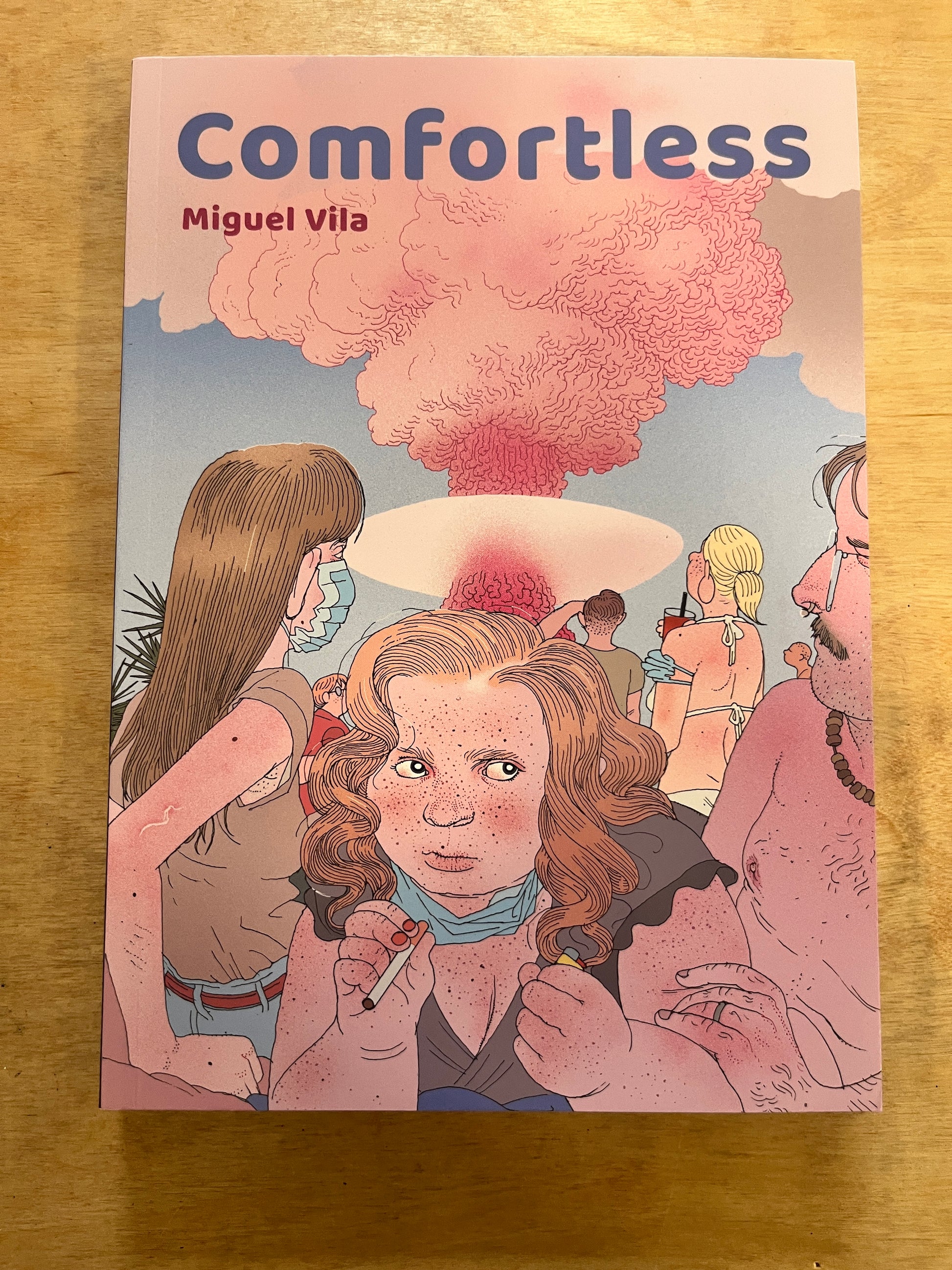 “This book makes no claims to scientific validity and is in no way intended for informational purposes.” So declares Miguel Vila in the outset of his new graphic novel, Comfortless, a taxonomy of the masks with which we pretend to live, executed with the precision of a master sociologist. It collects a kaleidoscope of weaving character studies, united by the ways vanity, jealousy, and selfishness manifest via fear, vice, and lust. Giorgia ends her relationship with Eva because she thinks her fling with Nic has resulted in her pregnancy. Nic has a secret to reveal to Daniele, but he can’t express it. Stella meets Daniele and tells him about the strange events they have experienced in recent years. Simone attends a New Year's Eve party knowing that he is positive for Covid.