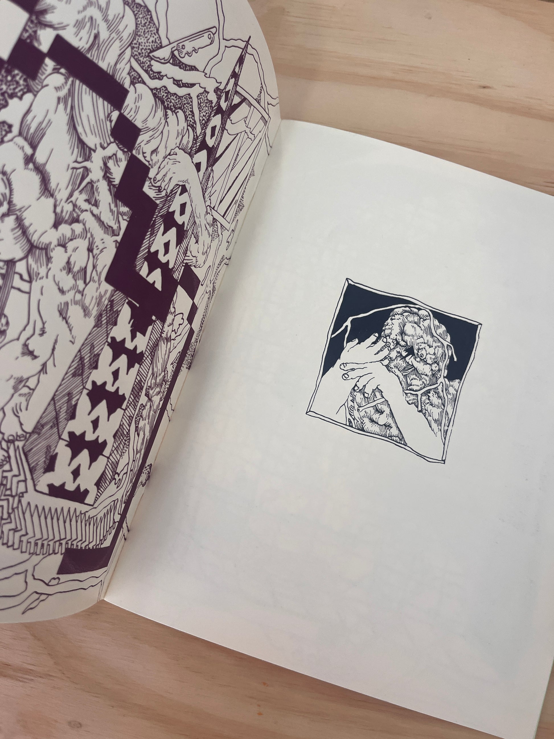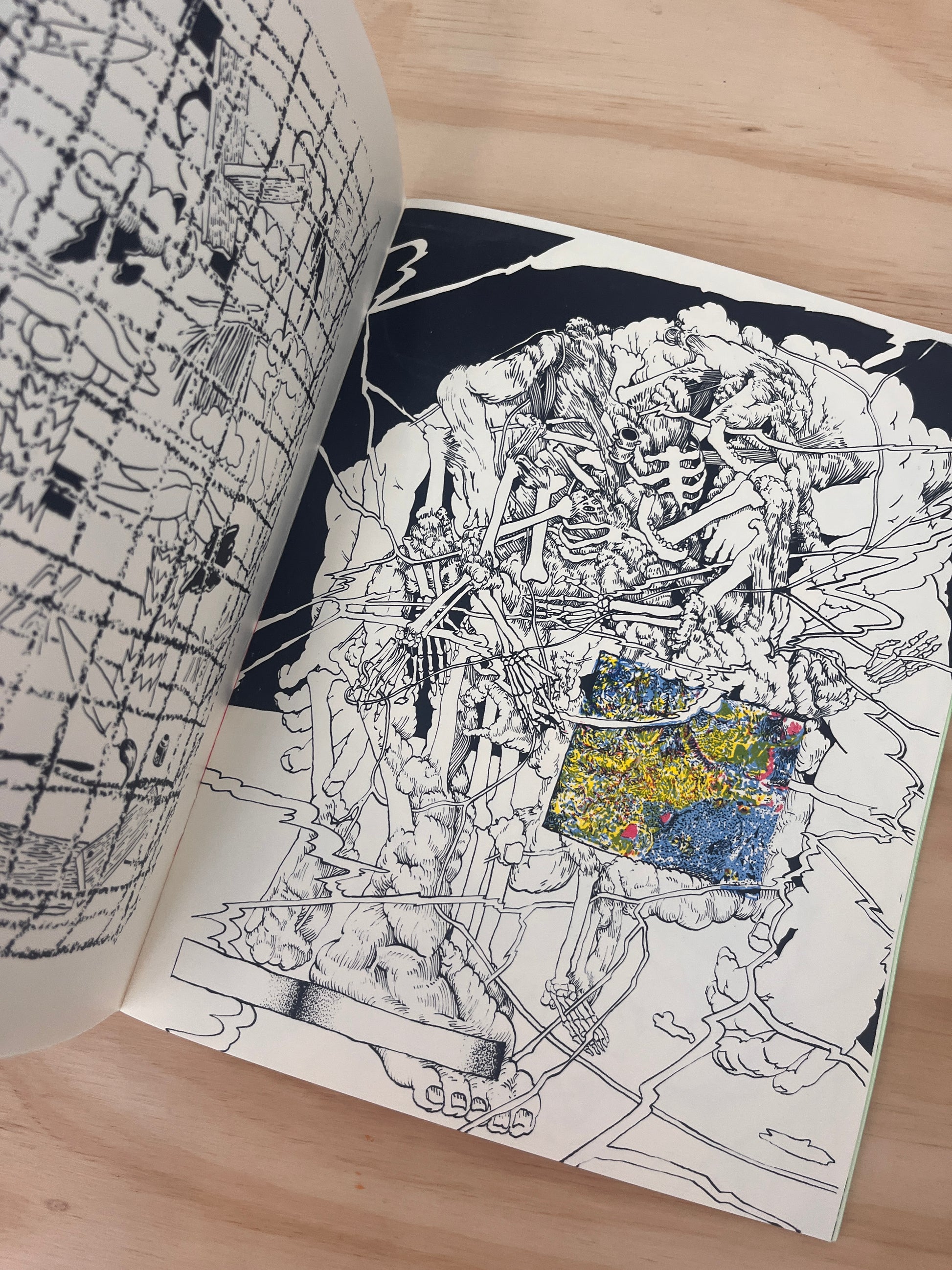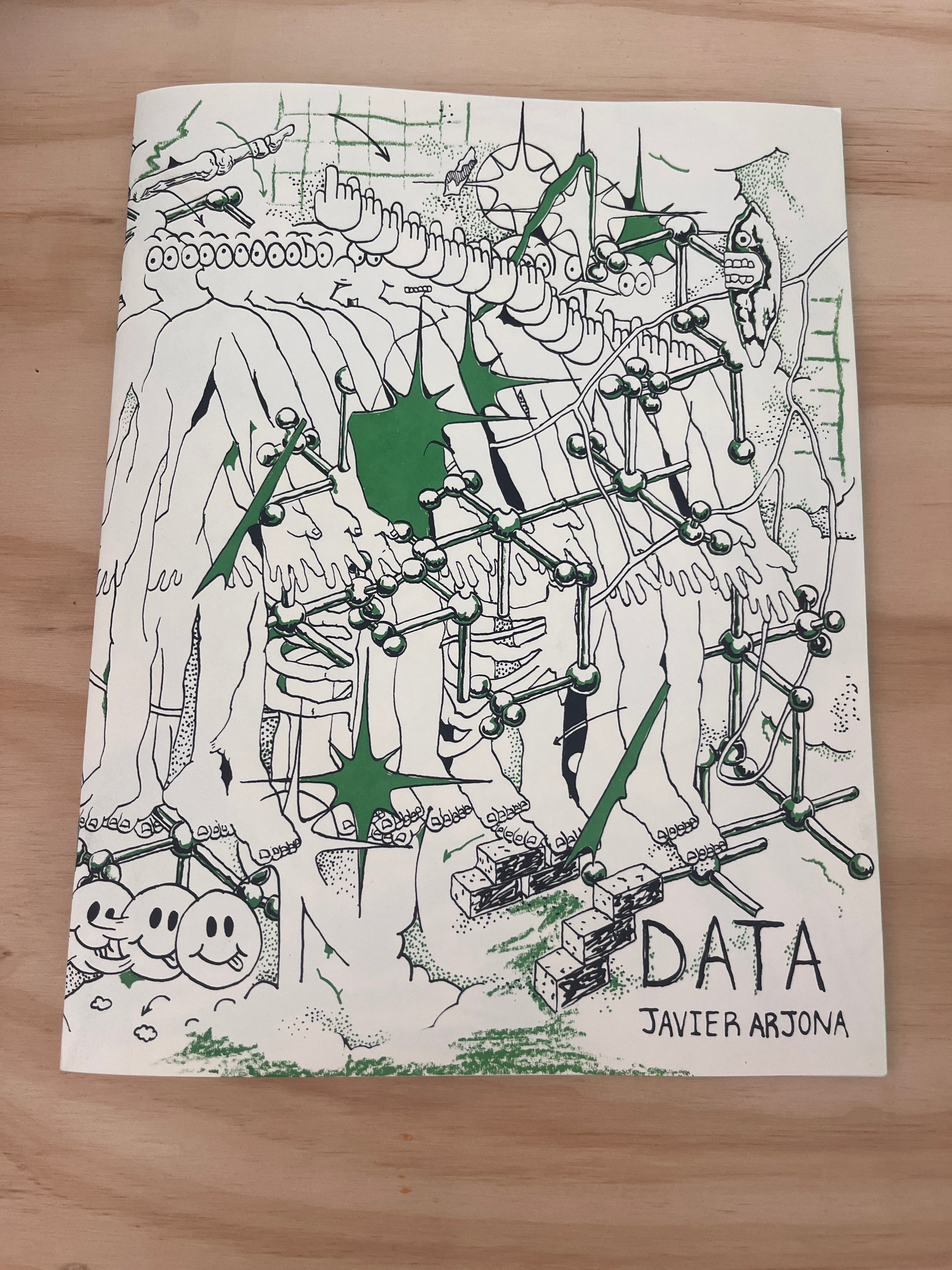 A trip through a dimension in which the virtual and the organic clash together in a glitch. Illustrated and hand screen printed by Mexican artist Javier Arjona from Rabia