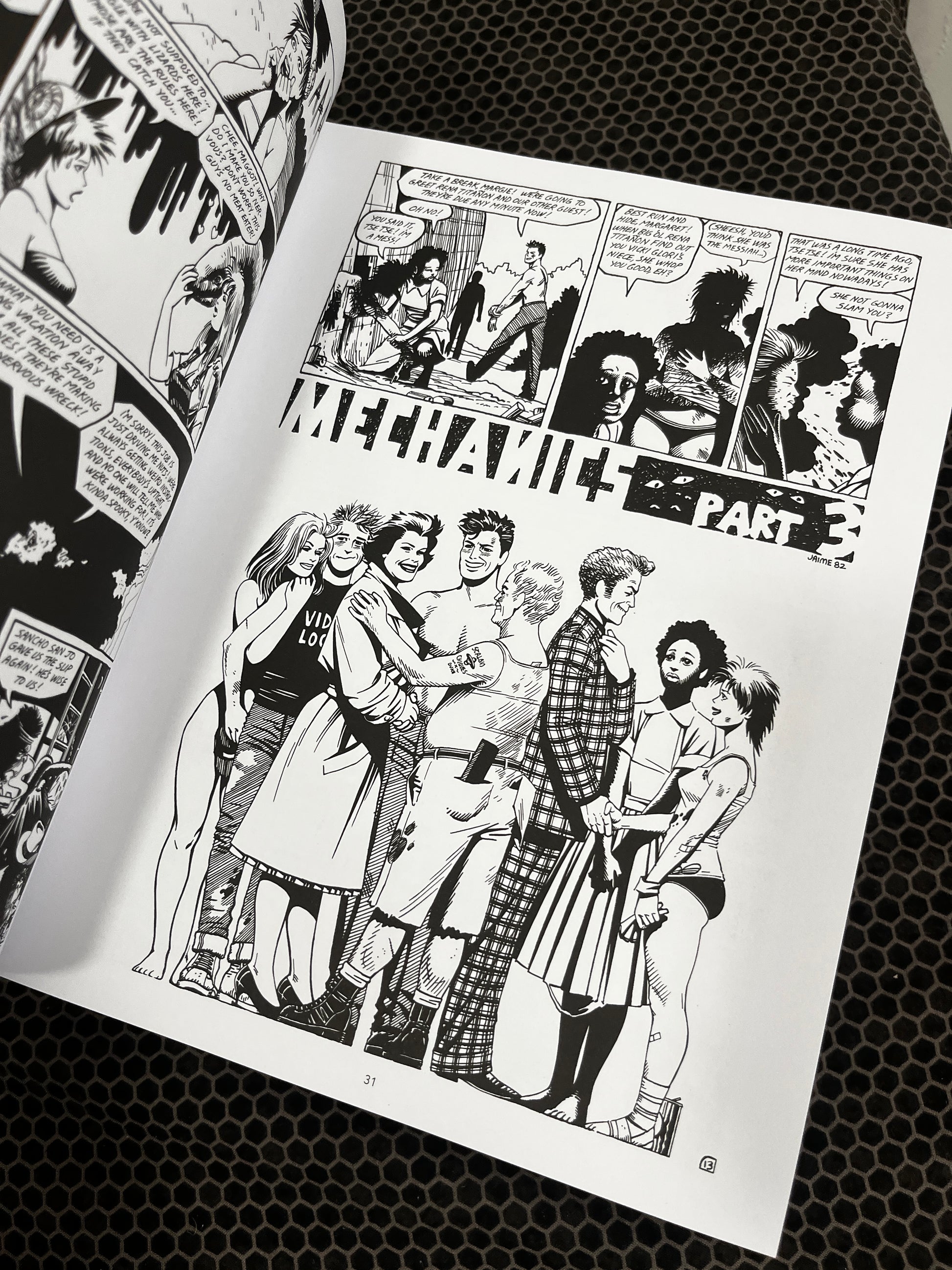 Maggie's story begins in the early-1980s Southern California rock scene, when it was shifting from the excesses of the 1970s to the gritty basics of punk and new wave. Hardcore punk rock came to the fore, and the teenage Maggie finds herself drawn to the anarchy, energy, and diversity of the scene, which in Jaime's hands becomes a very real, habitable place populated with authentic human beings rather than stereotypes. She quickly befriends Hopey Glass, a feisty anti-authoritarian punkette who quickly becomes Maggie's on-again, off-again lover and a constant presence in her life as they navigate a devastatingly naturalistic world.