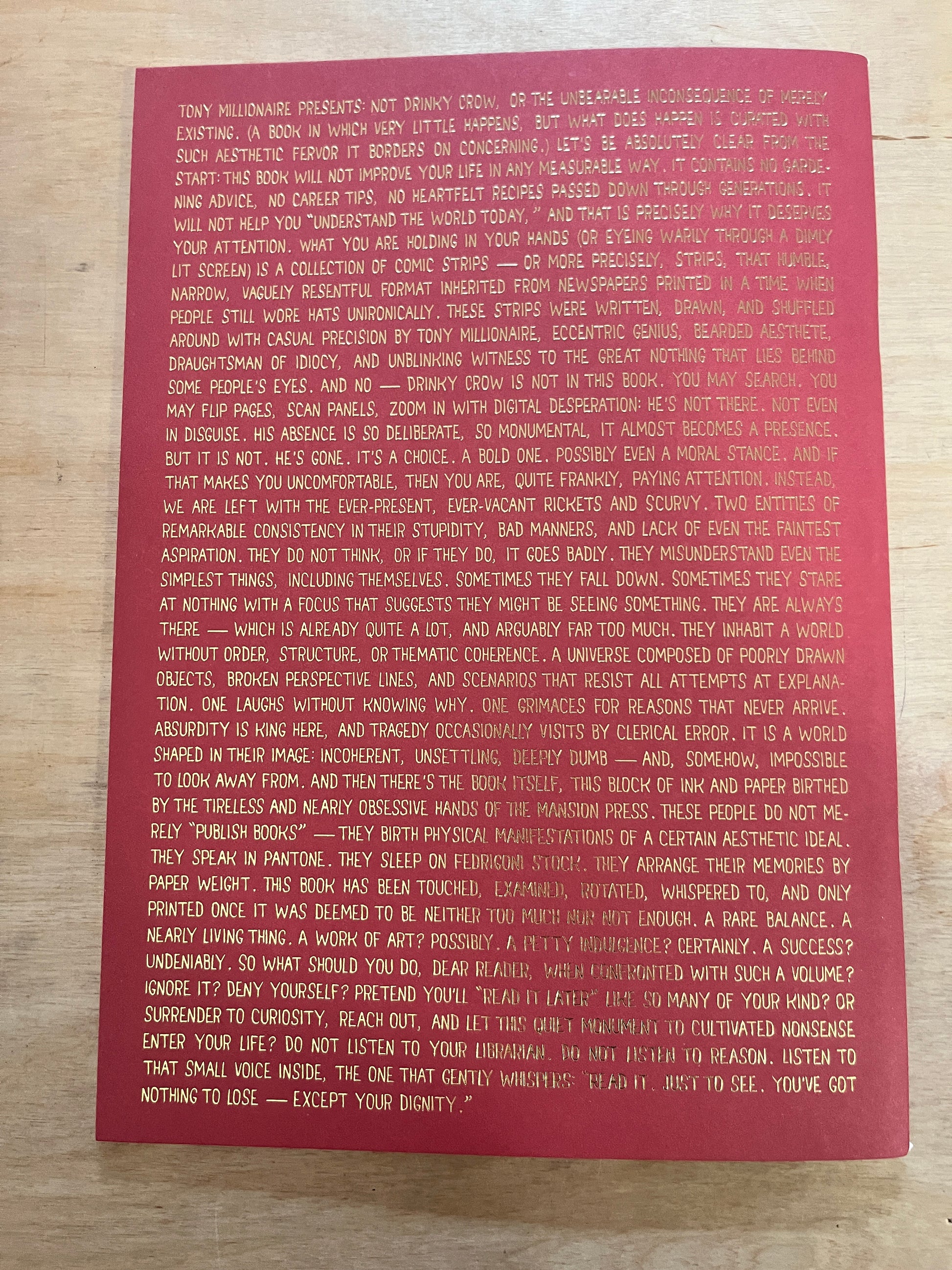 Not Drinky Crow is an essential comic collection by Tony Millionaire, perfect for fans of underground comics, surreal storytelling, and unique graphic art books. This beautifully crafted edition published by The Mansion Press showcases Millionaire’s unmatched talent for creating eccentric, unforgettable characters. Explore our shop to discover more limited editions, art books, and rare comics that celebrate the best of alternative illustration and independent publishing.