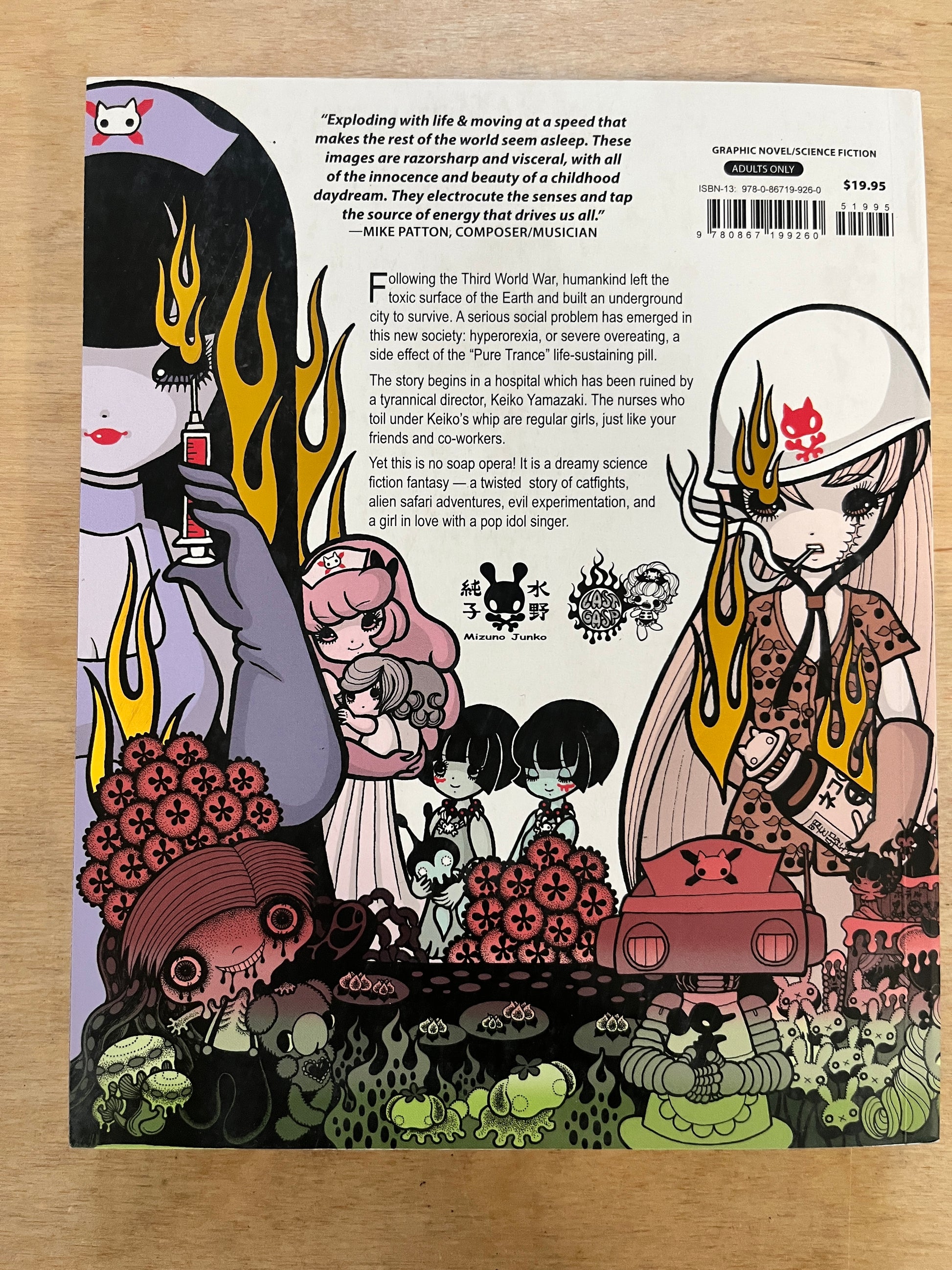 Following the Third World War, humankind left the toxic surface of the Earth and built an underground city to survive. A serious social problem emerged in this new society: hyperorexia, or severe overeating, a side effect of the Pure Trance life-sustaining pill. This dreamy science fiction fantasy — a sexy story of catfights, alien safari adventures, evil experimentation, and a girl who dreams of becoming a pop idol singer—is the long-awaited debut graphic novel of famous Japanese manga artist Junko Mizuno. Pure Trance breaks every stereotype of shojo manga (girls' comics).