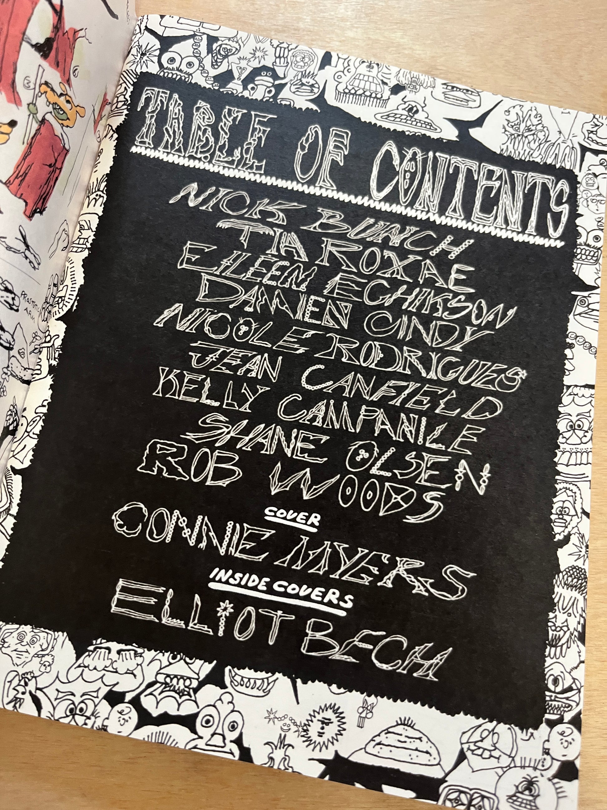 FINAL ISSUE(edited by Nick Bunch…) With a killer cover by the new Reptile House Comix EDITOR IN CHIEF Connie Myers!! 44 pages of Philly’s Phinest cartoonists! Featuring comix by Nick Bunch , Tia Roxae, Eileen Echikson, Damien Cindy, Nicole Rodrigues, Jean Canfield, Kelly Campanile, Shane Olsen, and Rob Woods. Inside covers by the one and only Elliot Bech