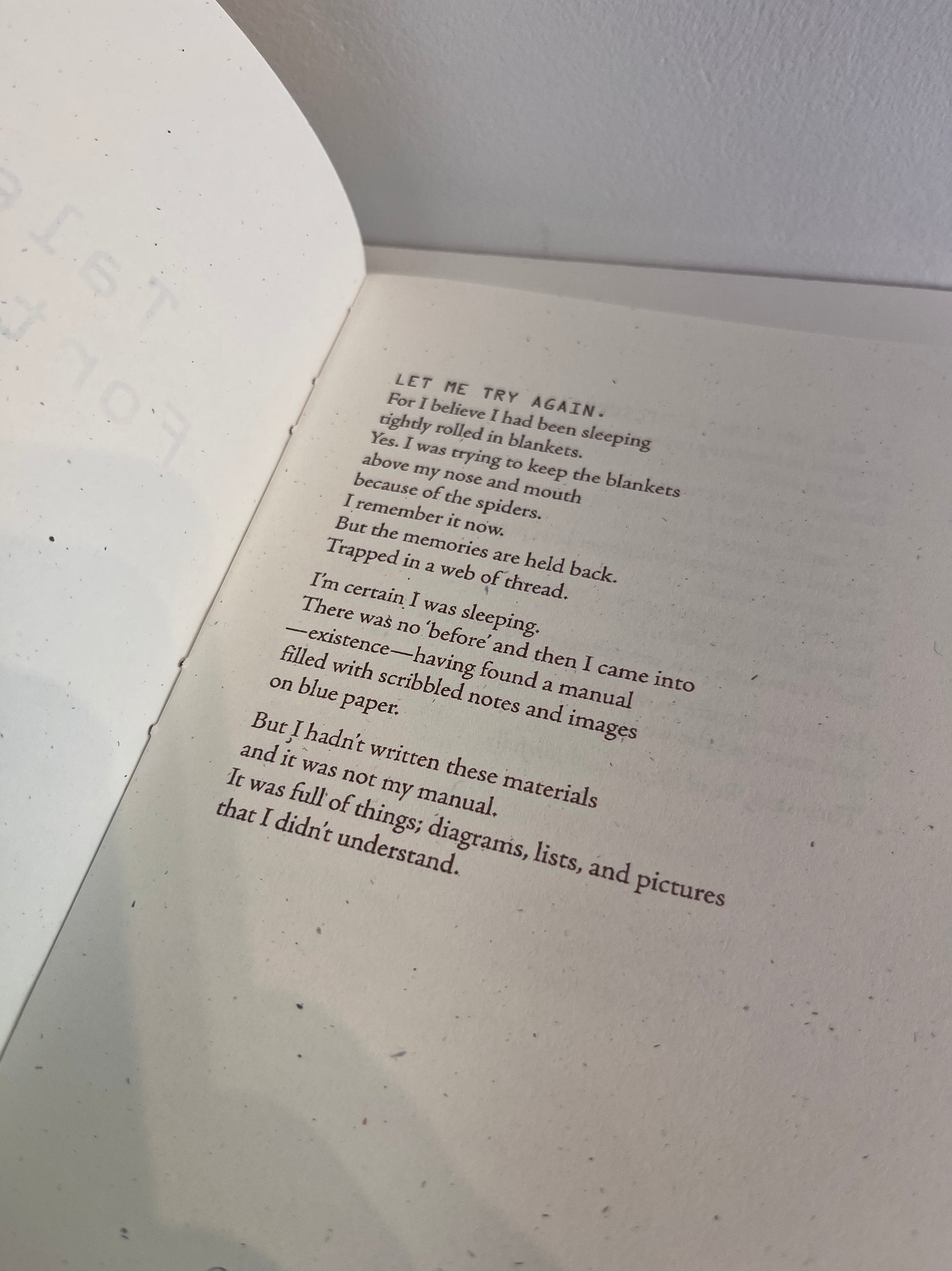 Tales of Fort Denial follows the journey of a glitching adventurer who enters an unknown land/system and is drawn to search for Fort Denial while being pursued by a mysterious creature. Tales of Fort Denial draws inspiration from 13th century grail quest poems, Renaissance herbals, dreams, word hoards, early video game systems and their manuals, synthesizing these into a long form poem that in turn draws the reader deeper into its world.