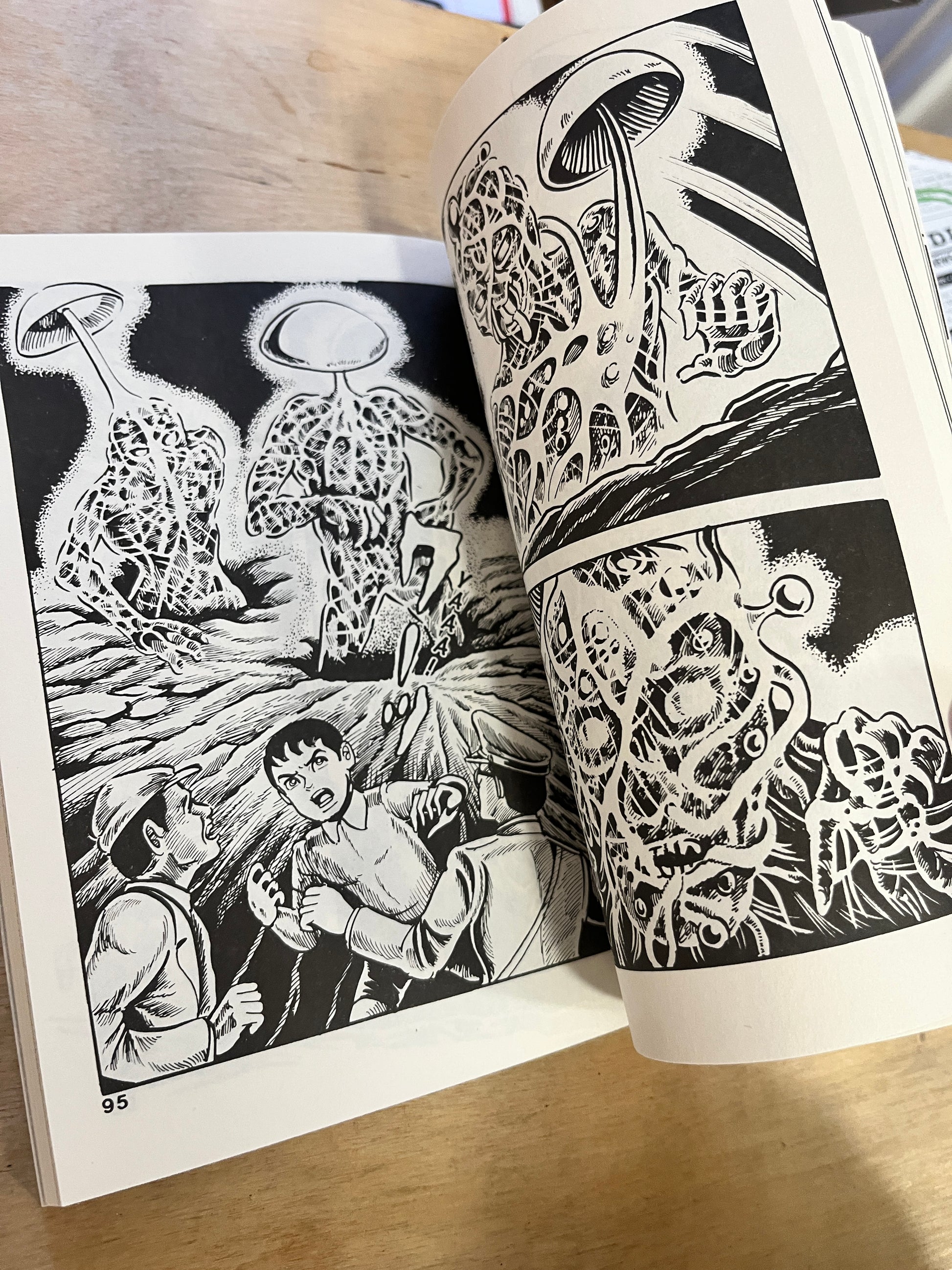 A flying saucer crashes deep in the mountains of Japan. Wary of the hyper-intelligent beings they find inside, the government hides from the public all news of the alien craft. But it’s not the strange visitors themselves that they should be afraid of―the real danger is the parasitic spores smuggled aboard! Will Earth survive the UFO MUSHROOM INVASION?!