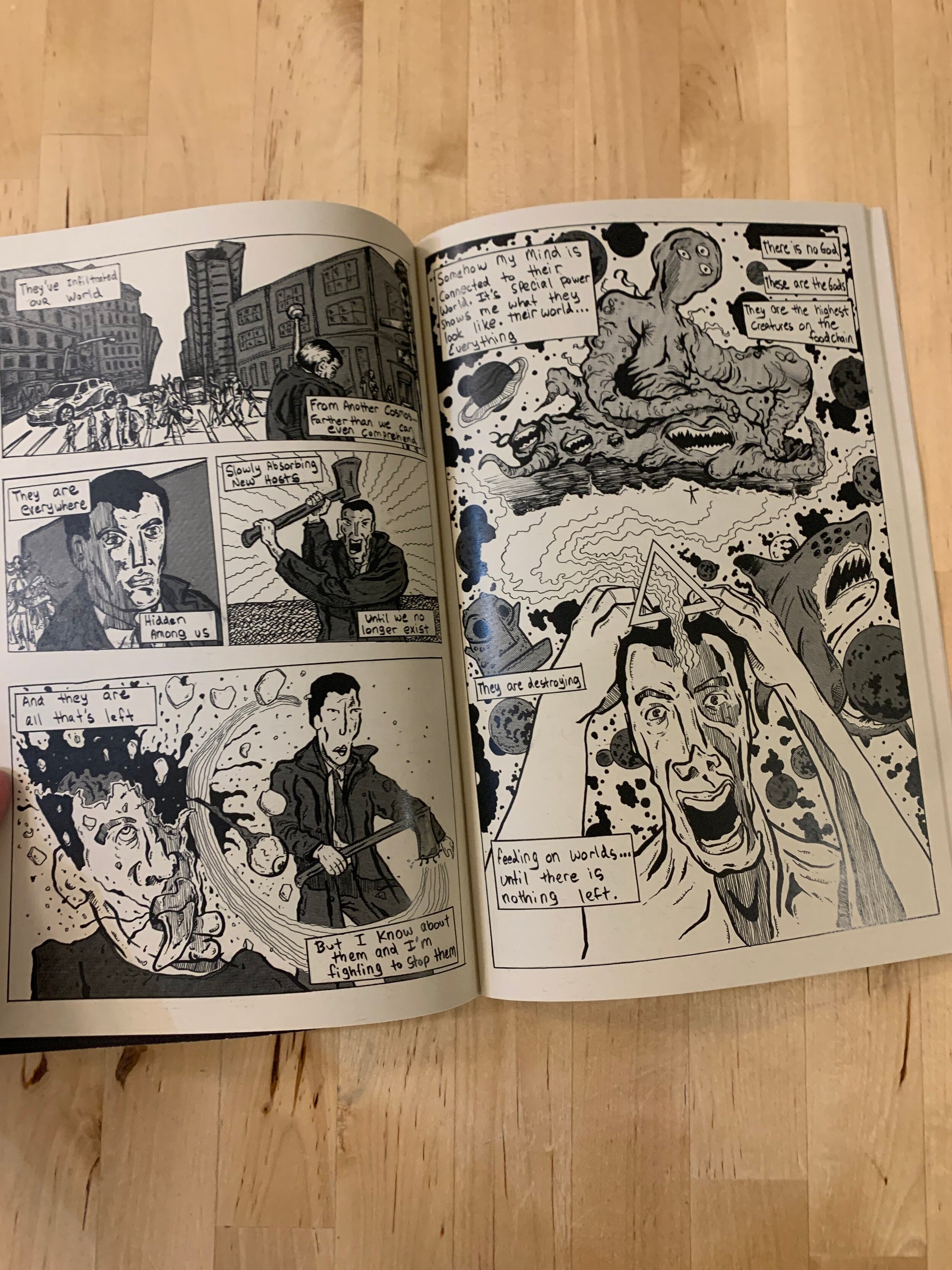 Existential horror to melt your eyes, from the minds of Harry Nordlinger, Jasper Jubenvill, Josh Simmons, Karmichael Jones, Corinne Halbert, Paul Jurczak, Michael Falotico, Chloe Burt, Erik Jasek, Cameron Foresley, David Enos and B.D. Kepley