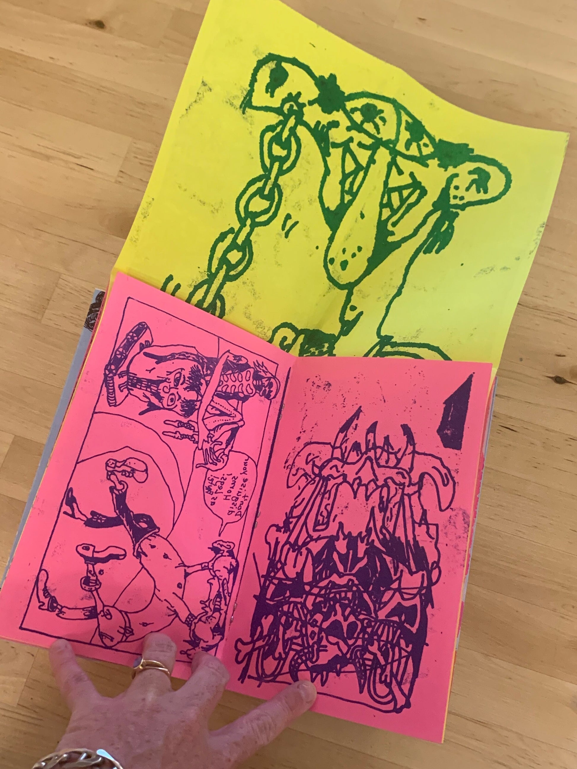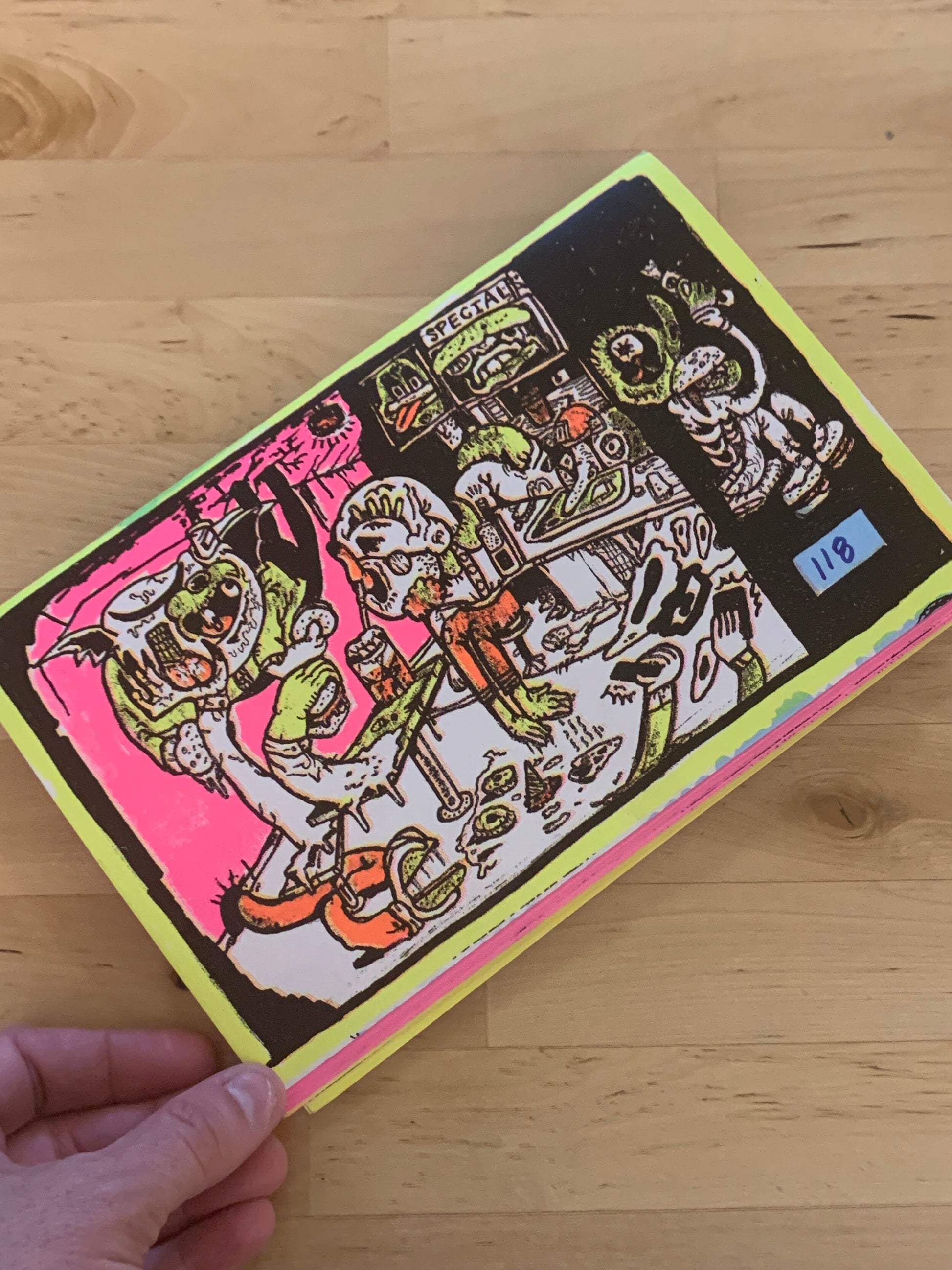 Joc Doc, Mexico, 49 pages, 14.5 x 21.5 cm (5.7 x 8.4 in), 4 colour screen printed covers & risographed insides over neon and yellow thick papers, Edition of 200 copies.