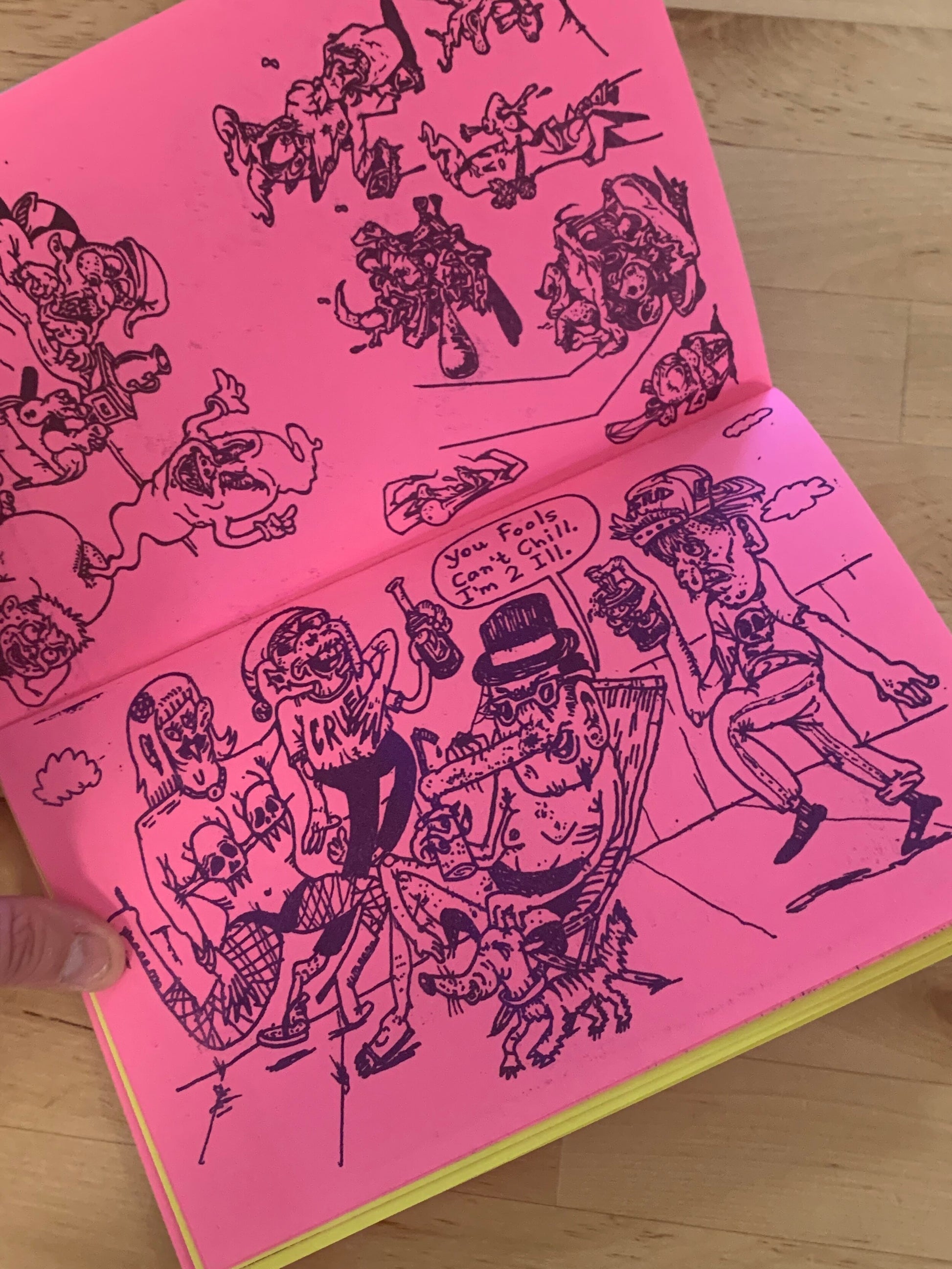 This is the first of a series of zines based on Joeys sketchbooks we will publish, where you can find a strange mix of 90's feel drawerings, notes, doodles and confusing traces that make you think of some other weirdos, from the guy who drew INVADER SIM to Gary Panter or Zven Balslev... A most for any fan of great and disgusting "bad drawing".
