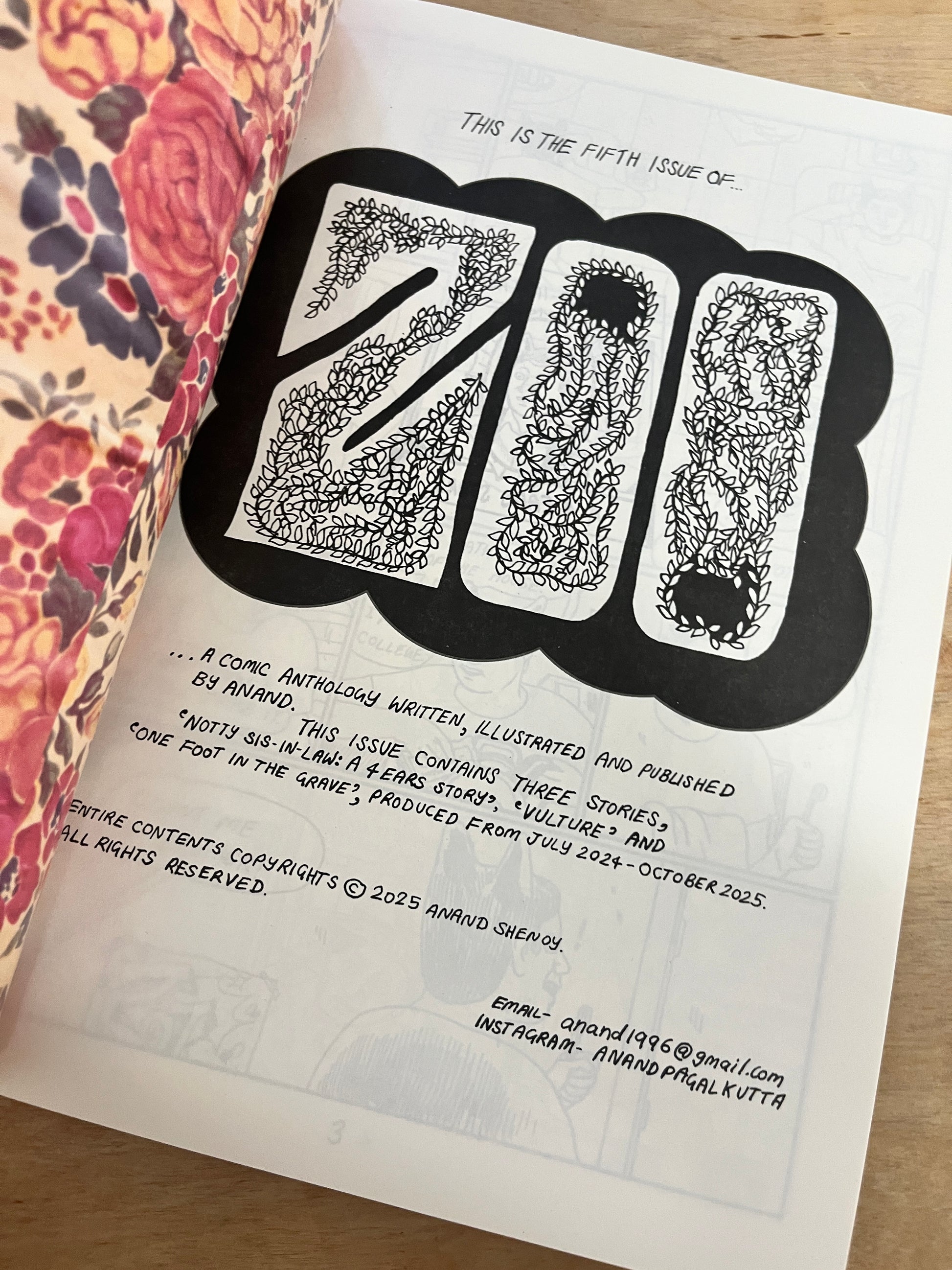The fifth issue of Zoo, a one-person comic anthology by Anand, is here! This issue contains three stories, ‘Notty Sis-in-Law: A Four Ears Story’, ‘Vulture’ and ‘One Foot in the Grave’. Stories about guilt, plagiarism, a parallel history of Indian alternative comics, grief, and going to watch p*rnography in the theatres.